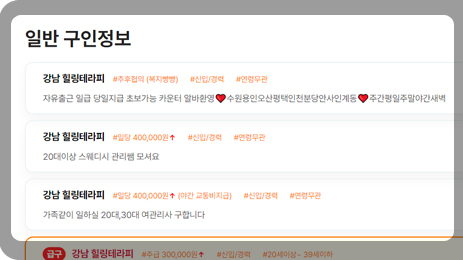 프리미엄, 우대, 일반, 급구, BOX강조, 자동점프